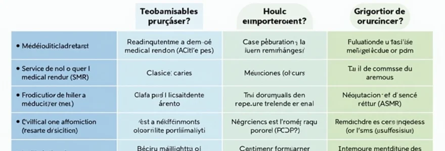 La Haute Autorité de Santé (HAS) joue un rôle central dans l’évaluation des médicaments en vue de leur remboursement. Elle s’appuie sur des critères rigoureux pour déterminer si un traitement mérite d’être pris en charge par la collectivité. Le principal indicateur utilisé est le Service Médical Rendu (SMR), qui évalue l’intérêt du médicament en termes d’efficacité, de sécurité, de place dans la stratégie thérapeutique et d’impact sur la santé publique.